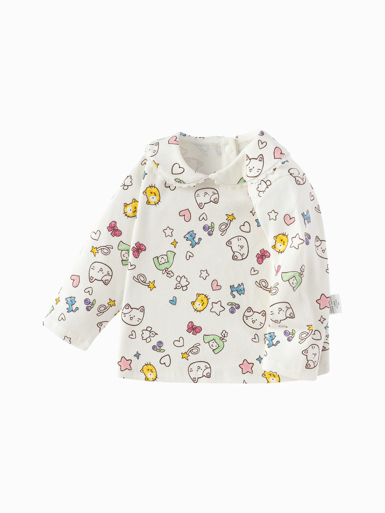 1. Color: This off-white color will make children look very elegant and versatile, with white cat scene prints, and a sweet and fashionable style. 2. Style: This standard version, sweet lapel design, can be worn alone or as an inner layer, to meet a variety of matching, texture fabric, good breathability, so that children will feel particularly comfortable and elegant, with cat prints on the chest, foaming technology, 3. Matching: This can be matched with vests, casual clothes, woven pants for children, and it is particularly suitable for wearing. 4. Season: This thickness is suitable for wearing throughout the spring