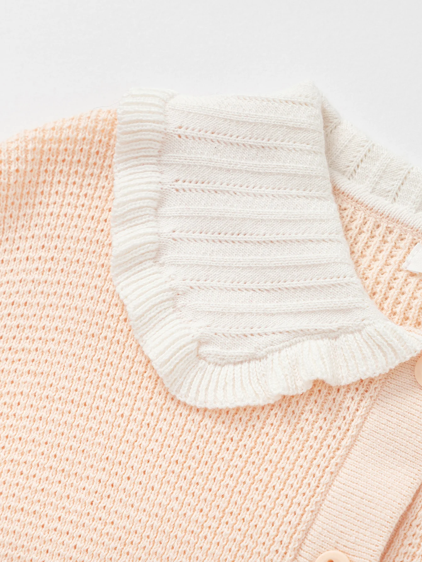 1. Color: This green one is childish and cute, while the pink orange one is sweet and fashionable. 2. Style: With a small ruffled collar, it is soft and skin-friendly for children to wear. 3. Matching: This one can be matched with a white skirt for children, which is very suitable and fashionable for outdoor and daily life. 4. Season: This one is moderately thick and suitable for transitional wear in spring and summer.