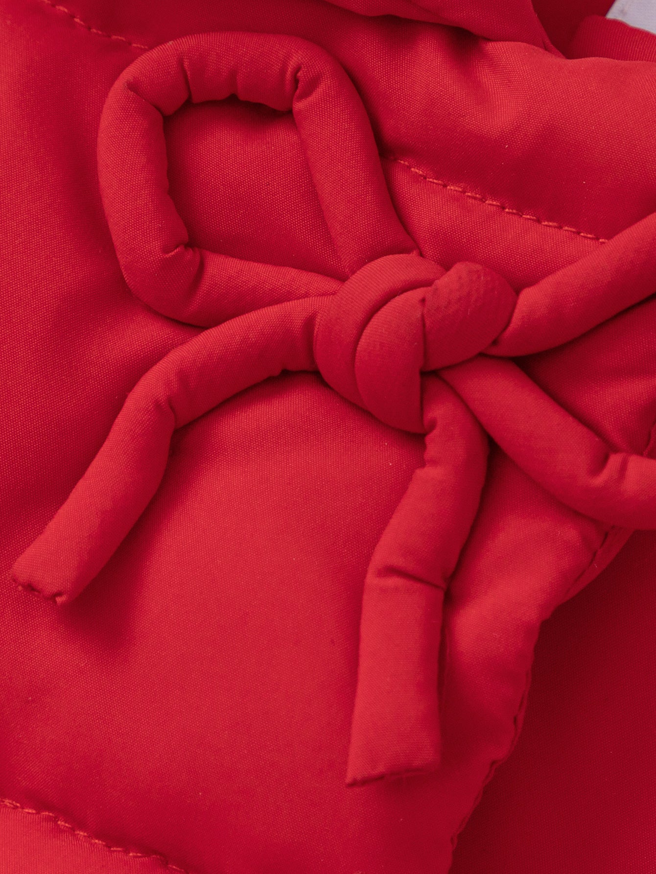1. Color: Red is festive and has a New Year atmosphere. 2. Style: Lightweight quilted fabric, fluffy and warm, with a delicate and sweet bow. 3. Matching: This top can be paired with a sweatshirt from the same series for children, and a black skirt for the bottom. 4. Season: This top is of moderate thickness and is suitable for New Year wear.