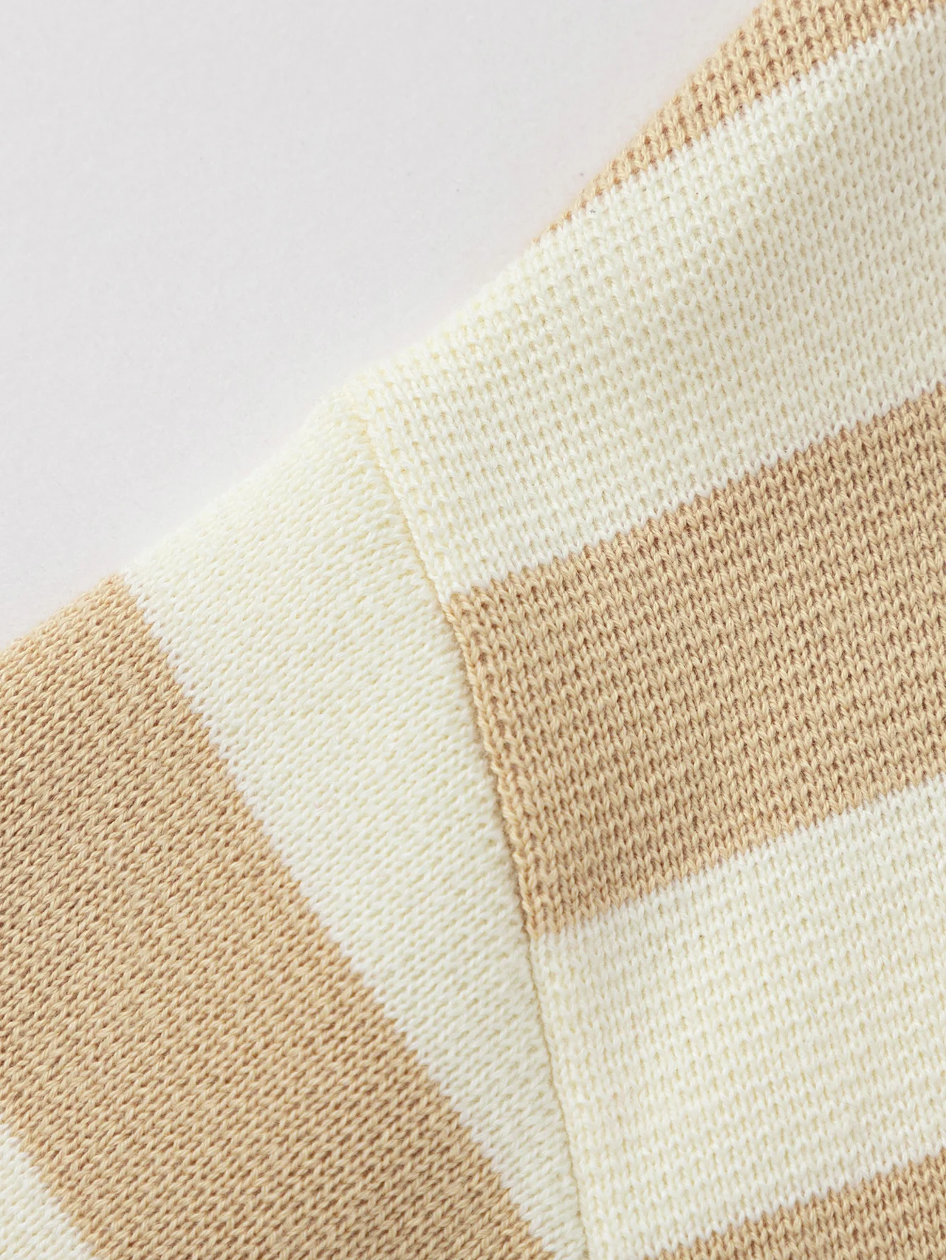 1. Color: This wool cardigan is available in two colors: white with blue stripes and white with brown stripes. It is very suitable for children's skin tone and can be worn with any outfit. 2. Style: Loose wool cardigan, suitable for children's body shape. The standard style is clean and neat, and the leather patch on the front adds a sense of design; the fabric is moisture-absorbing, perspiration-wicking, skin-friendly and smooth, with a sense of bone. 3. Matching: This style can be matched with a T-shirt or shirt for children. It is basic and versatile and suitable for any occasion! 4. Season: This thickness is suitable for wearing in late winter, early spring, and autumn, and can be worn inside or outside