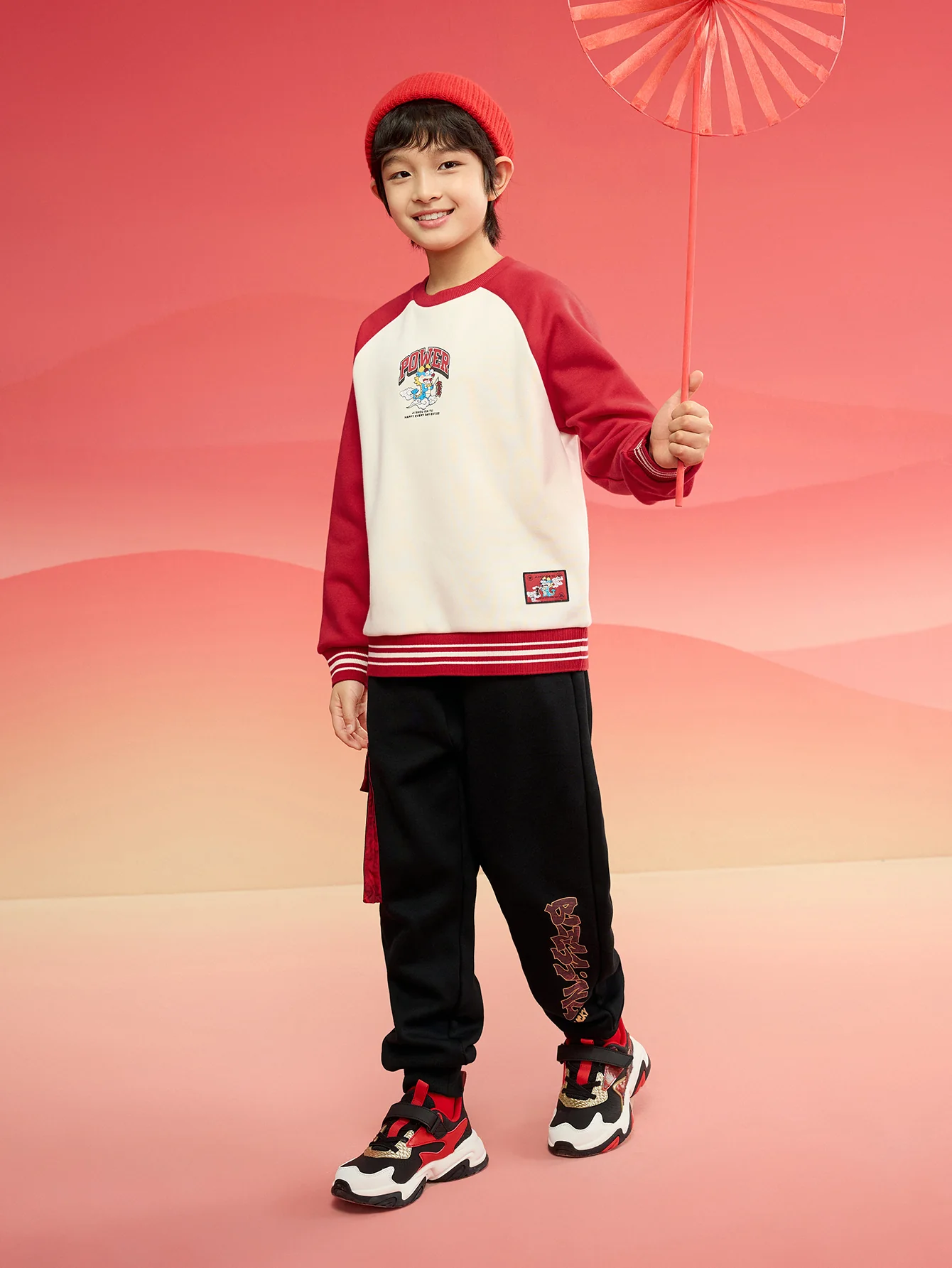 1. Style: Loose raglan sleeves, comfortable and easy to wear, single-layer flat cuffs and hem, full of design sense; 2. Fabric: 280G double-sided cloth-bottomed brushed fabric, warm and windproof, shape-retaining and durable; 3. Color: Two colors to choose from, red and white, red and black contrasting design, exquisite contrasting striped flat cuffs and hem, full of fashion sense; 4. Pattern: The image of the spine beast and the fish-catching beast has a beautiful meaning, and means auspiciousness, prosperity and harvest. It is expressed through the design of printing and woven labels, which is more fashionable.