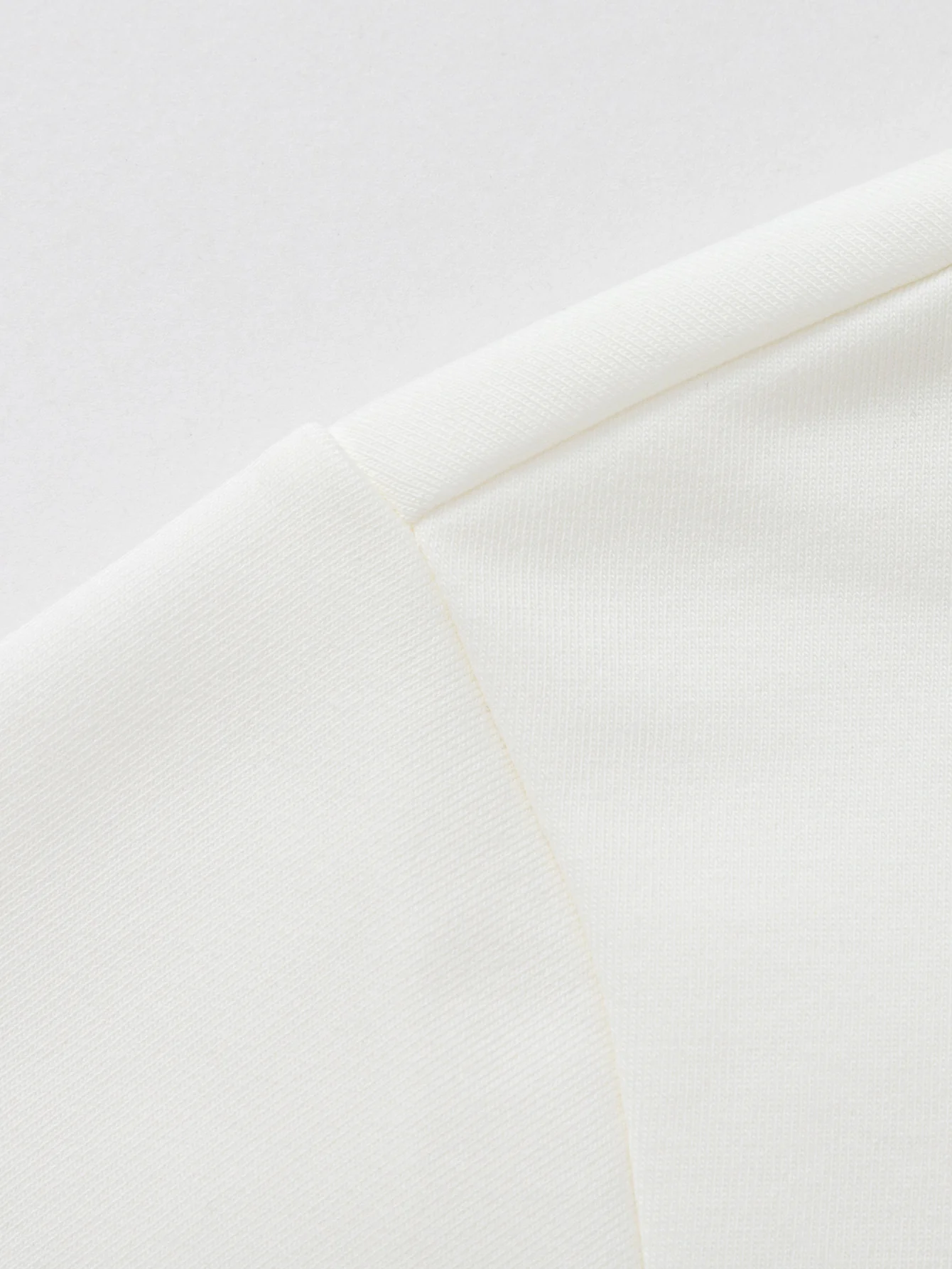 This model uses magic yarn sweater fabric with moderate thickness, which is soft to the touch without losing the skinny feeling, absorbs moisture and dries quickly, and is innovatively fake two-piece. The lining is made of plaid printed fabric, and the outer piece is loose-fitting. The contrasting color design of the neckline echoes the color of the lining. The front chest is combined with a niche IP designer pattern, a watercolor effect, fresh and interesting, and the whole piece is full of novel details. It can be paired with straight pants or a skirt, etc.