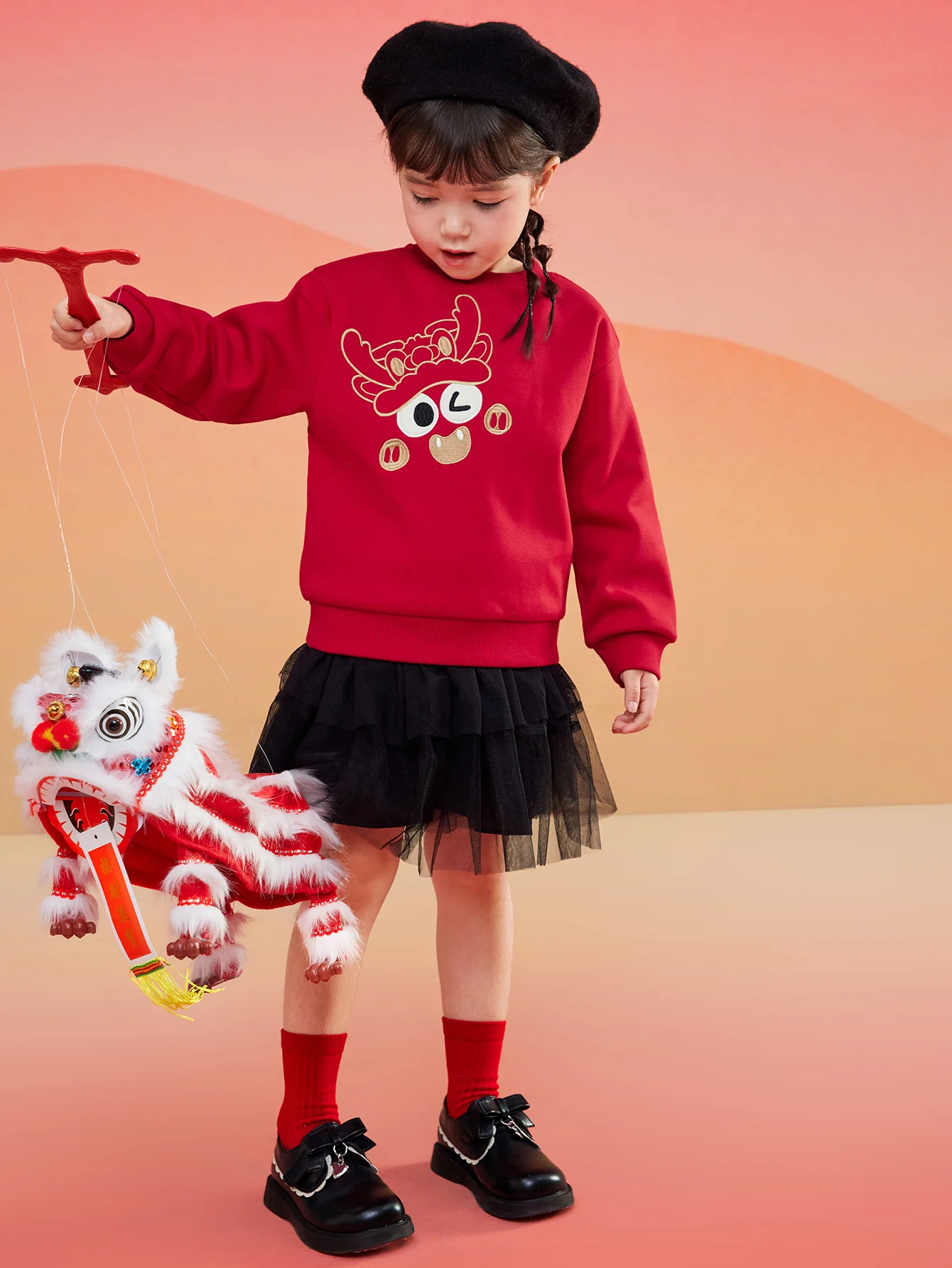 1. Style: Loose and slightly dropped version for young children, comfortable and easy to wear, with strong inclusiveness; 2. Fabric: 280G double-sided fleece fabric, warm and windproof, shape-retaining and durable; 3. Color: Selected Chinese colors for the New Year season, with a strong festive atmosphere; 4. Pattern: The cute God of Wealth Snake pattern of the Year of the Snake, combined with embroidery craftsmanship, is fashionable and exquisite, cute and versatile.