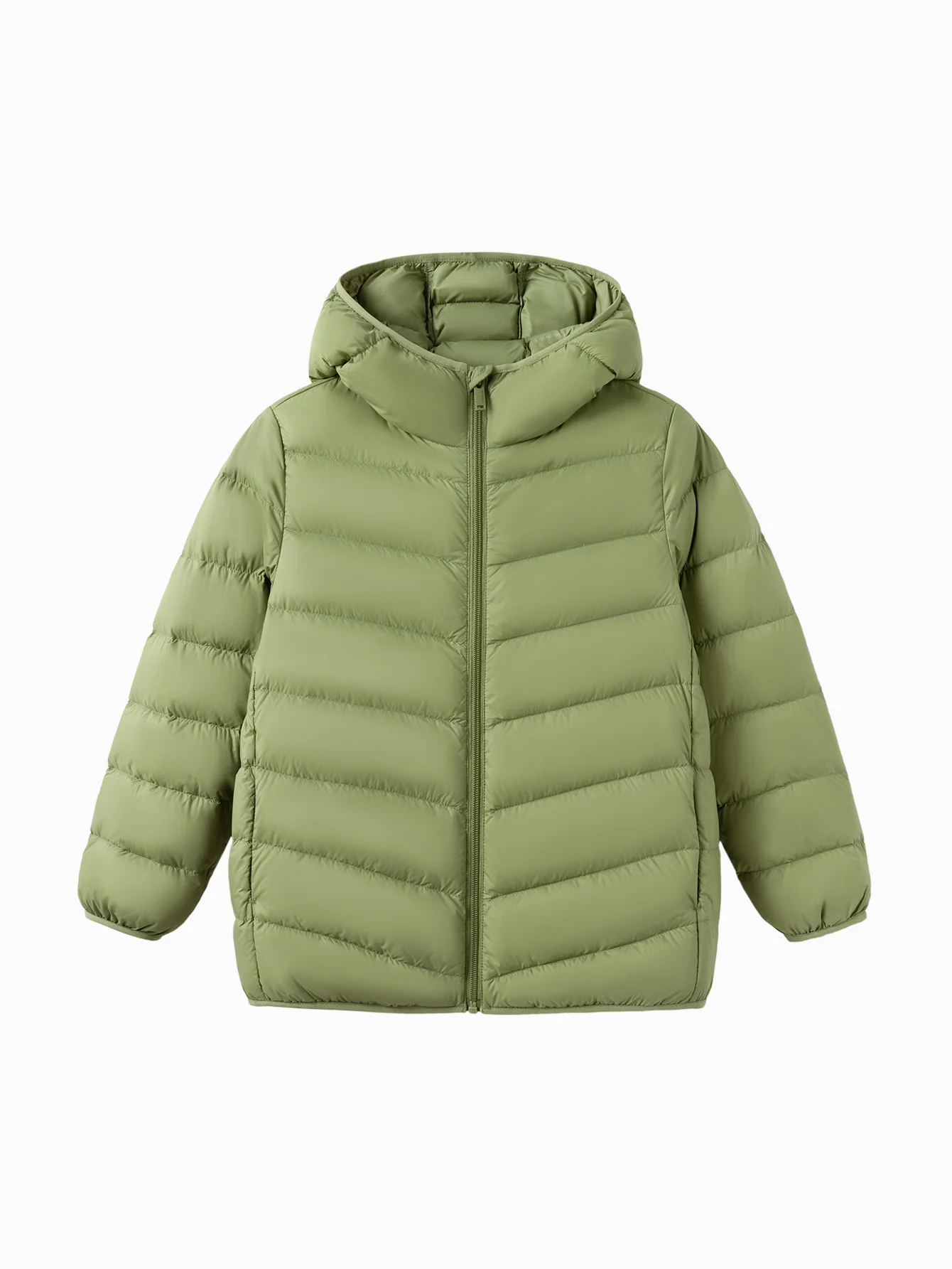 1. Three-proof (waterproof, oil-proof, and stain-proof) fabric, easy to care for; 2. High-quality down, 90% down content, IDFB fluffiness 670+, cleanliness 700+, warm and heat-locking; 3. The hooded design is more protective and warm, the arched zipper on the placket is smoother, and the elastic webbing that tightens the hem and cuffs is neater; 4. Intimate design, with a name tag inside