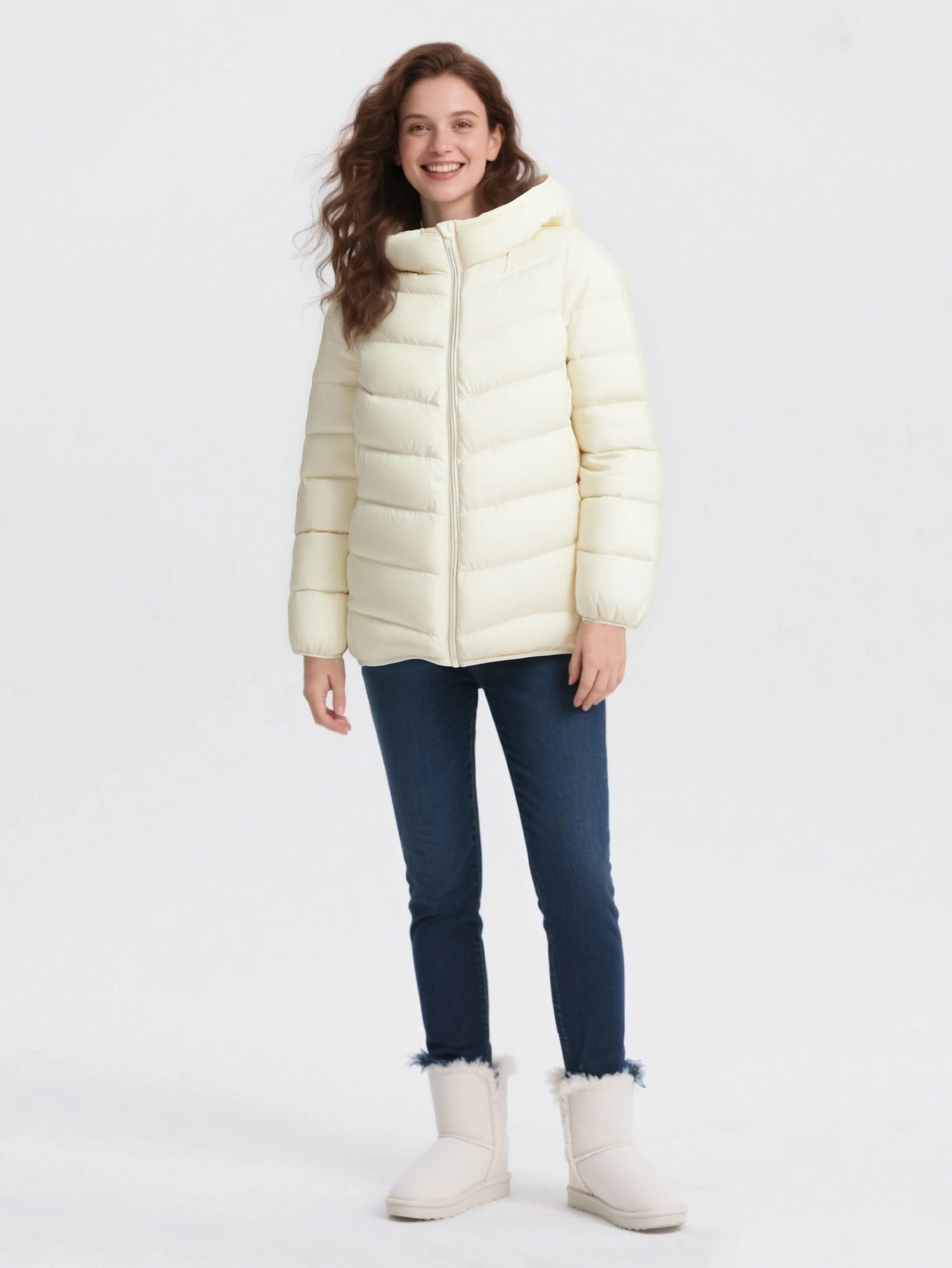 Unisex Family wear Cream White Down Jacket