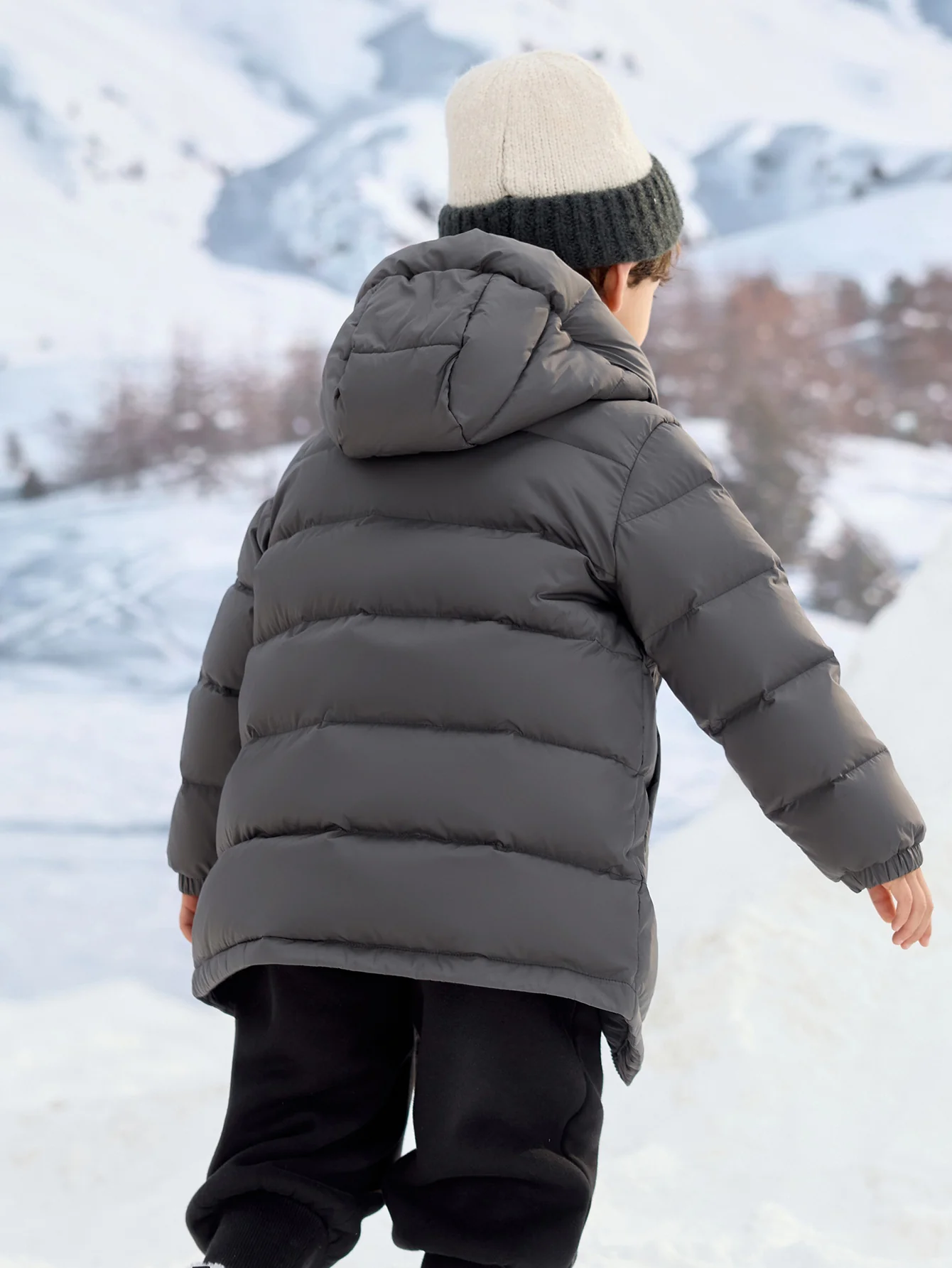 - 1/3-length warm puffer coat structure for both warmth and mobility.